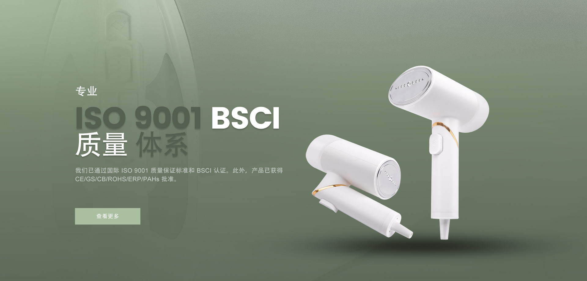 我們是一家專業(yè)的制造商和出口商,提供設(shè)計(jì)、開發(fā)、生產(chǎn)、銷售和相關(guān)服務(wù),產(chǎn)品包括電熨斗、手持式蒸汽掛燙機(jī)、蒸汽刷等。 美威工廠占地4000平方米,擁有雄厚的技術(shù)力量和先進(jìn)的設(shè)備,可以滿足您對(duì)生產(chǎn)能力和質(zhì)量的各個(gè)方面的要求,目前已通過(guò)國(guó)際 ISO 9001 質(zhì)量保證標(biāo)準(zhǔn)和 BSCI 認(rèn)證。此外,產(chǎn)品獲得 CE/GS/CB/ROHS/ERP/PAHs 批準(zhǔn),并遠(yuǎn)銷歐洲、中東、俄羅斯、亞洲和南美等。